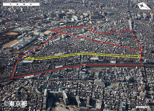 都主体の市街地整備事業の航空写真