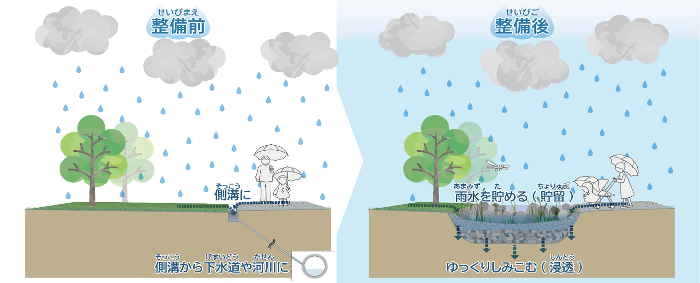 雨水をしみこませるまちづくり