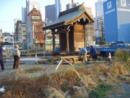 ~地区内にあった地蔵倉を曳家で移動している様子~