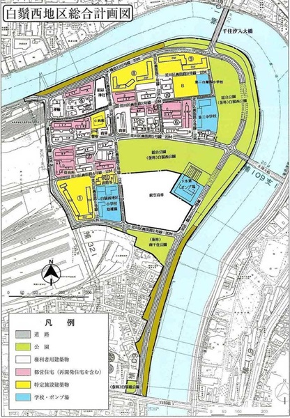 当地区は、昭和44年江東デルタ地帯における震災対策・生活環境の改善と経済基盤強化を図ることを目的とした「江東再開発基本構想」において、白鬚東地区と共に6つの防災拠点として位置づけられ、災害時における避難広場(避難人口約12万人)の確保、安全で快適な生活環境の整備、地域特性を配慮した経済基盤の強化等を目的として事業を実施しました。