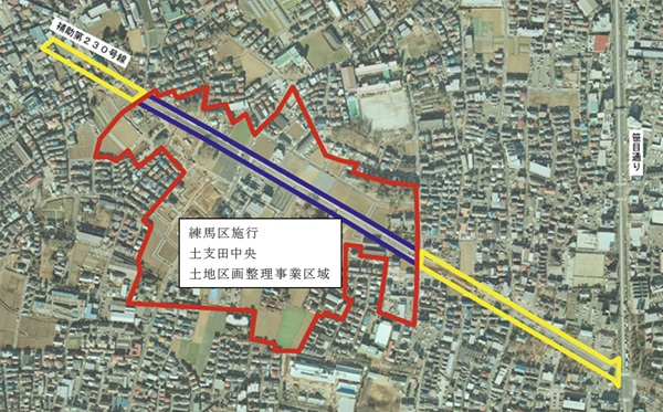 笹目通りから土支田通りまでの区間において、東京都が整備する区間(図中黄色の区間)と、練馬区による土地区画整理事業(図中赤色の区域)により整備する区間があります。