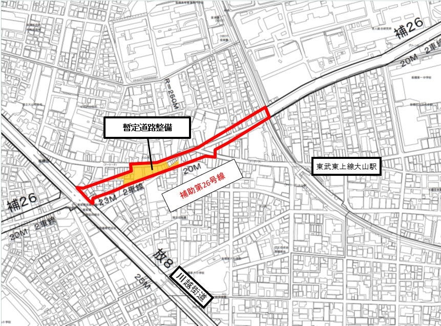 用地取得に合わせ、暫定的な道路整備を予定しています。