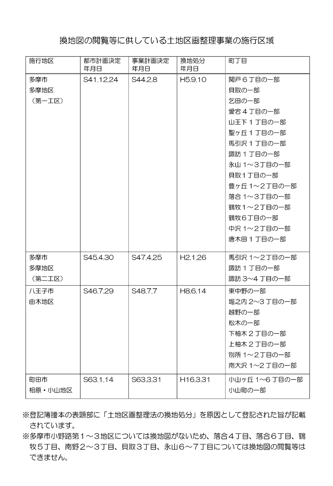 多摩ニュータウン整備事務所では、過去に東京都が施行した土地区画整理事業の換地図を公開しています。
